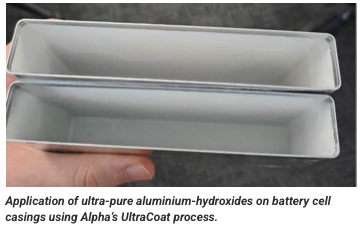 Alpha’s proprietary Ultra-Coat process provides an efficient aluminium oxide coating for anode and cathode active materials, offering a suite of performance benefits including enhanced safety, improved cycle life, better charging rates, and reduced first-cycle lithium loss.